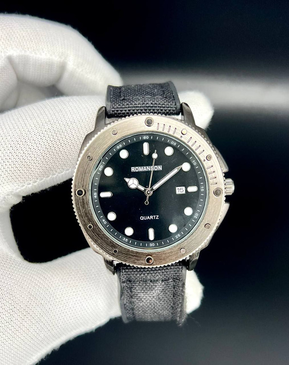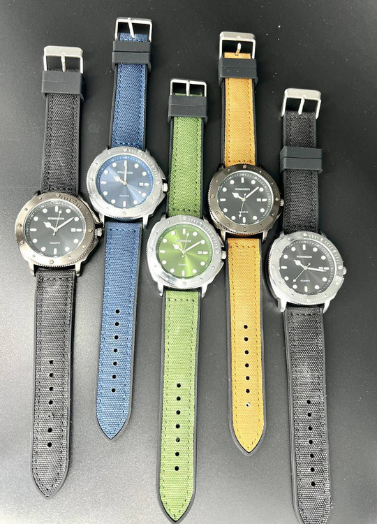 ساعت رومانسون مردانه - تقویم فعال - عقربه ها شب نما دار - بند رابر با کیفیت خوب با کیفیت عالی مقاوم در برابر آب و ۵ رنگ مختلف.