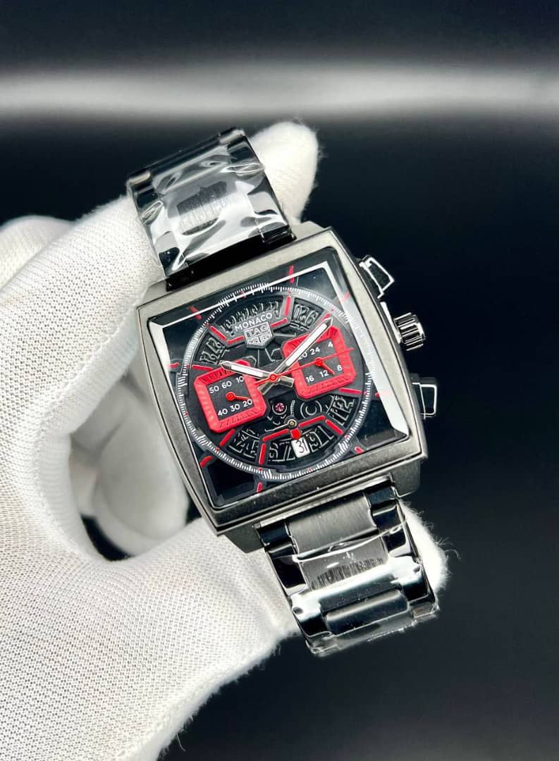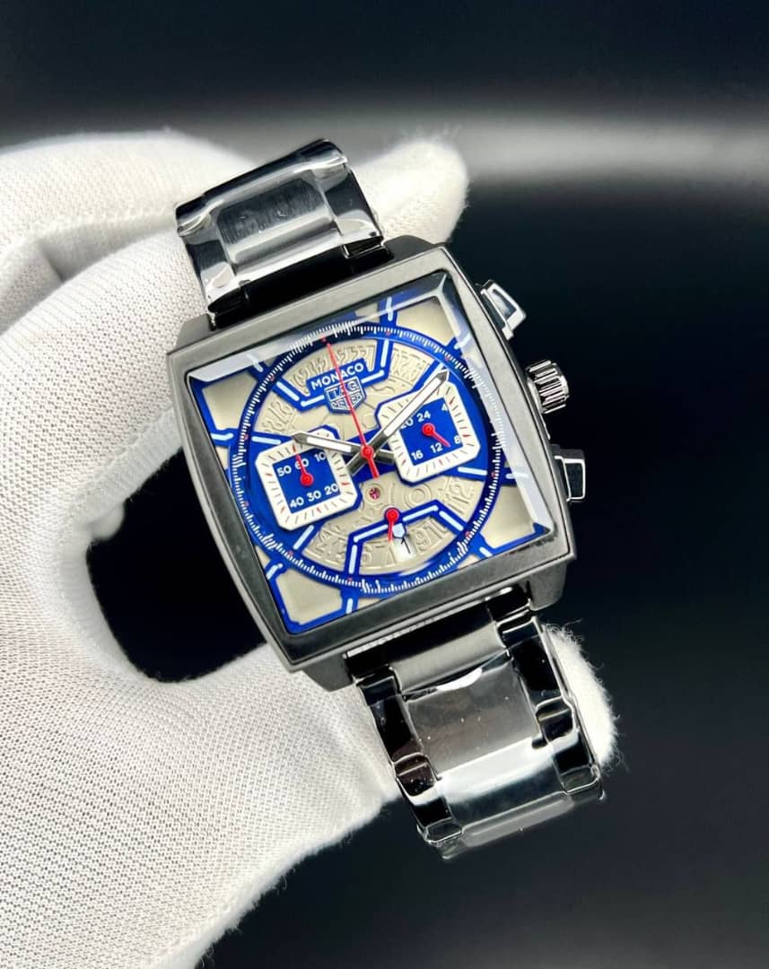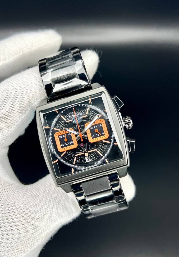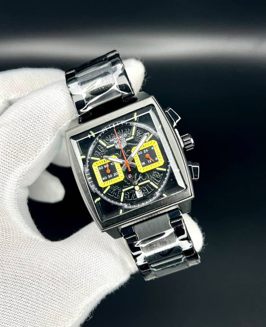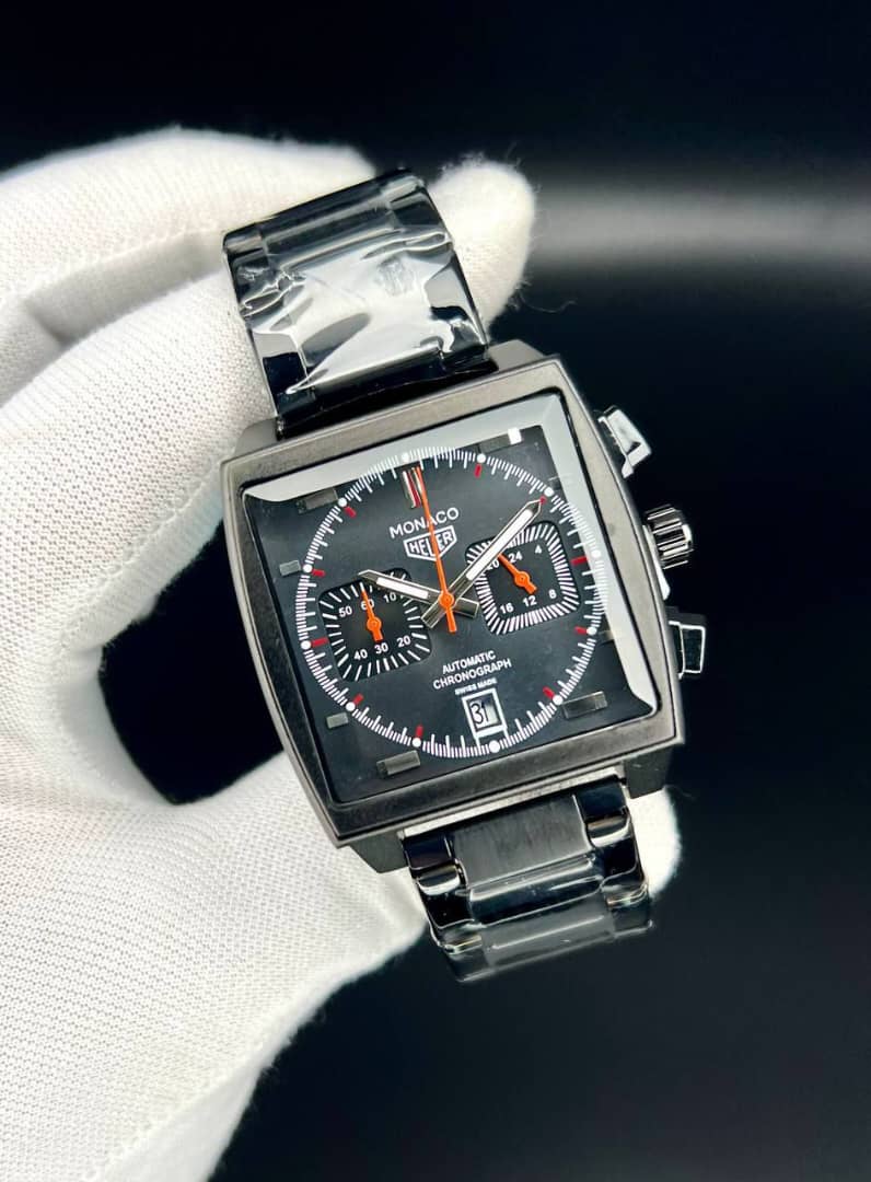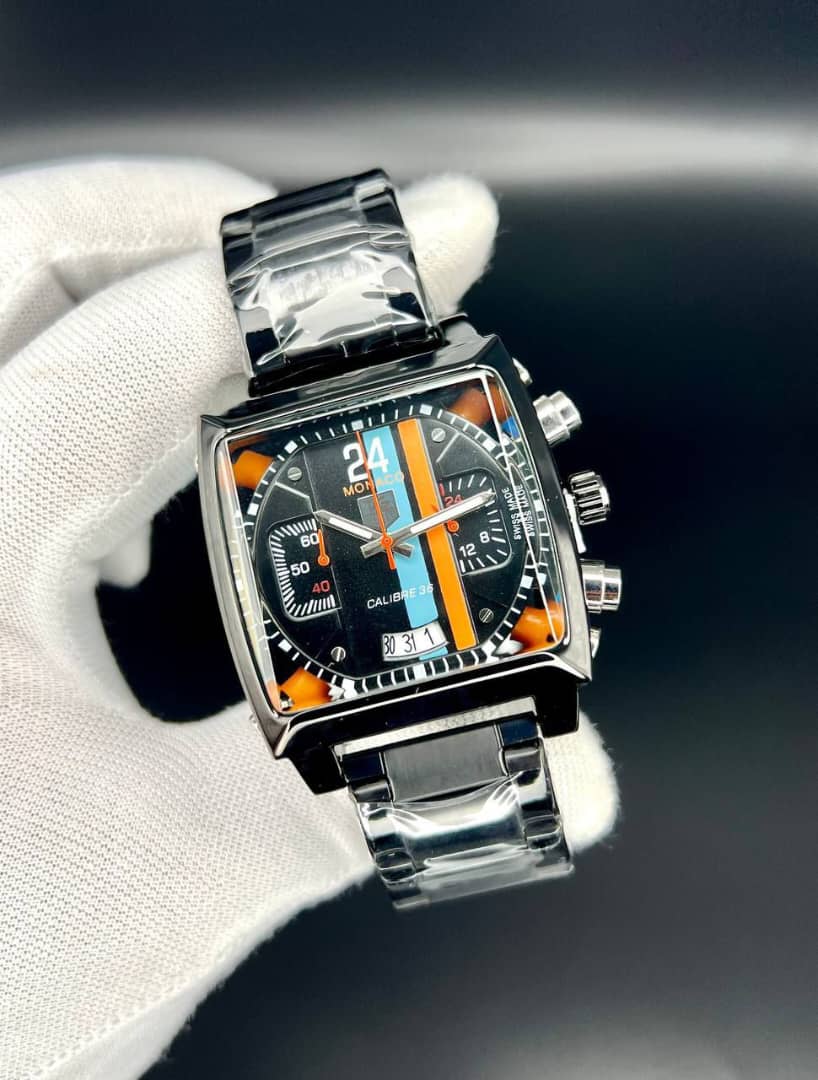 تک هوبر مدل موناکو صفحه مربع - کیفیت عالی - سه موتوره ژاپنی - تقویم فعال - قفل و بند استیل رنگ مشکی صفحه ساعت در تنوع رنگ